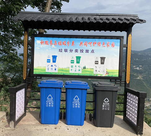 固定方式:分類亭采用預埋式或膨脹螺絲(si) 固定式,垃圾桶直接擺放。
