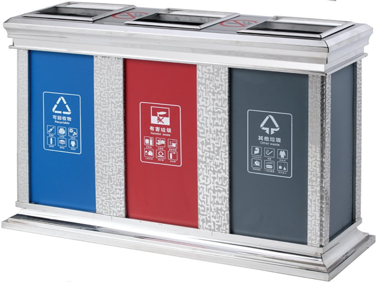 果皮箱桶身表麵仿大理石圖紋處理;底座模具一次成型;