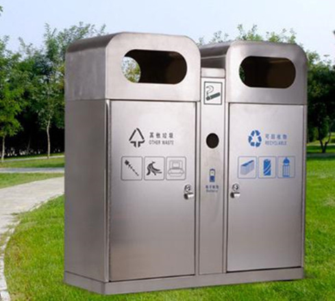 門板 :分類垃圾收集,讓垃圾分類投放,麵板激光切割有立體(ti) 感;配不鏽鋼三角鎖。