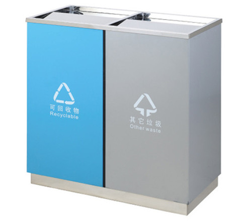 門板 :分類垃圾收集,讓垃圾分類投放,麵板激光切割有立體(ti) 感;配不鏽鋼三角鎖。