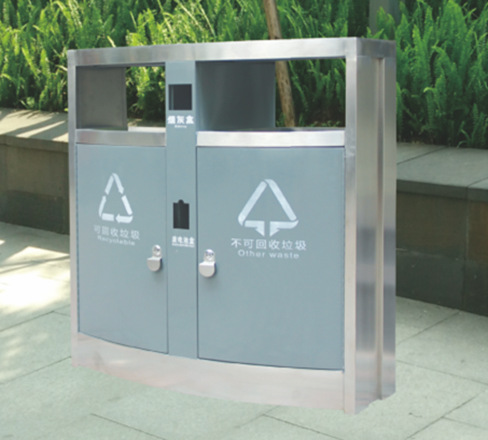 門板 :分類垃圾收集,讓垃圾分類投放,麵板激光切割有立體(ti) 感;配不鏽鋼三角鎖。