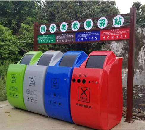 固定方式:分類亭采用預埋式或膨脹螺絲(si) 固定式,垃圾桶直接擺放。