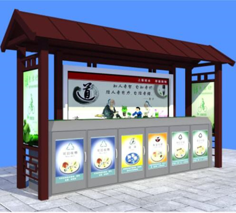 製作工藝:分類亭表麵金屬烤漆處理,分類宣傳(chuan) 欄圖紋內(nei) 容顏色根據業(ye) 主要求製作; 表麵酸洗、磷化、噴塑處理。