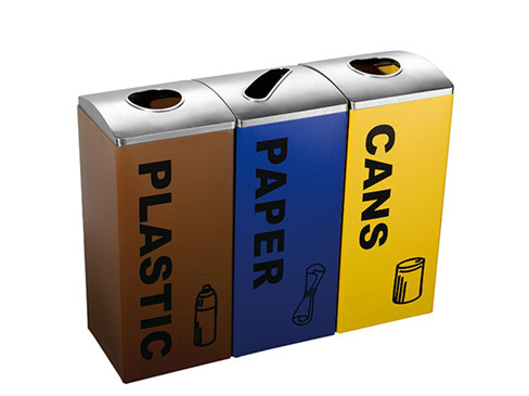 材質:通常采用白鋼、鍍鋅板或不鏽鋼等材質製作,這些材質具有耐腐蝕、耐候性強、易於(yu) 清潔和維護等特點,適合戶外使用。結構設計:設計為(wei) 三個(ge) 獨立的投放口,每個(ge) 投放口都標有明確的垃圾分類標識和說明,箱體(ti) 內(nei) 部也進行了合理的分區,以確保不同種類的垃圾不會(hui) 混合在一起。環保標識:箱體(ti) 上印有具體(ti) 收集垃圾的類別、中英文注解以及標記符號,並在注解下方以圖形列舉(ju) 具體(ti) 可投入垃圾的名稱。附加功能:一些新型的三分類果皮箱還配備了有害物投放孔和滅煙裝置等附加功能。