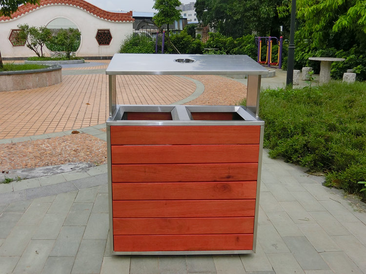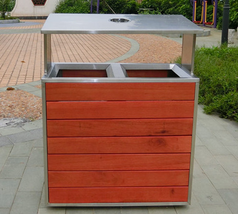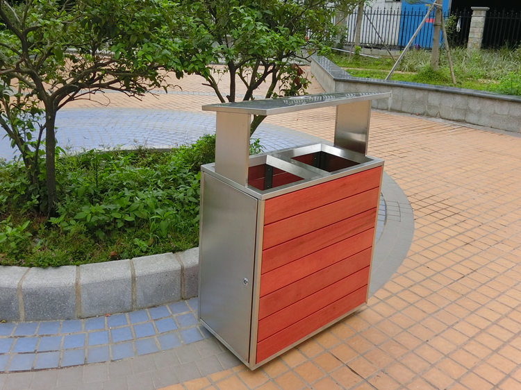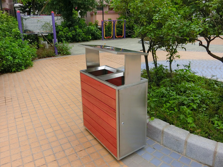 不鏽鋼材質與(yu) 塑木材質結合的果皮箱結合了兩(liang) 種材質的優(you) 點,既具有不鏽鋼的耐腐蝕、高強度和易清潔等特性,又擁有塑木的環保、美觀和質感。以下是對這種果皮箱的詳細分析: