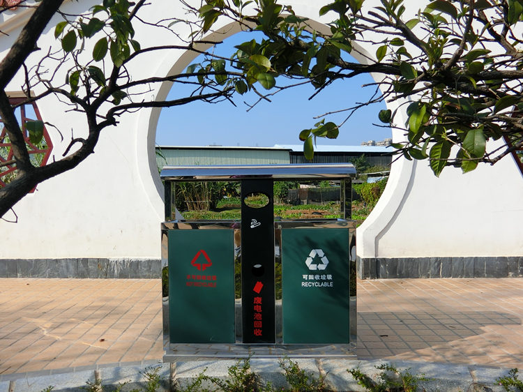 分類功能:根據垃圾分類要求,選擇具有相應分類功能的果皮箱。例如,對於(yu) 需要分類投放可回收物、有害垃圾和其他垃圾的場所,應選擇三分類或更多分類的果皮箱。