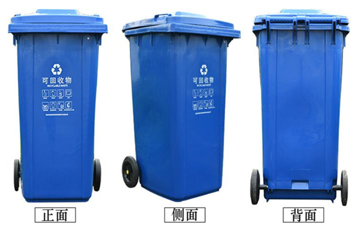 8、桶體(ti) 內(nei) 部有刻度標識(從(cong) 60L 起,20L/刻度),垃圾處理人員能通過垃圾密度係數, 快速算出垃圾的重量。